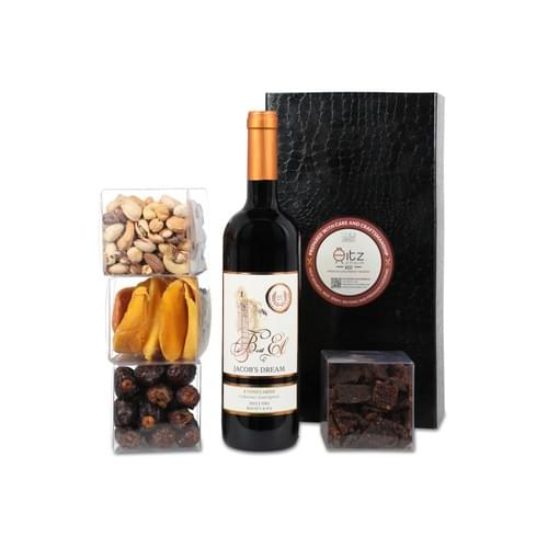 A refined Mishloach Manos experience featuring a bottle from Beit El Winery, beautifully presented in a magnetic black gift box with ECB jerky and your choice of curated pairings. Each box is thoughtfully assembled with candy or premium fruit and nuts, creating the perfect balance of bold wine, savory richness, and elevated indulgence. Elegant, generous, and ready to gift - this is a wine box designed to impress.View more details...SelectSelectQuantityComing soon